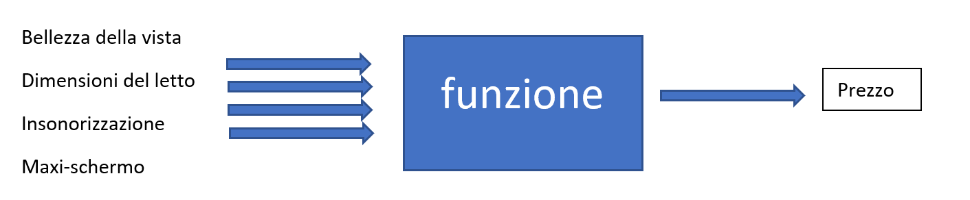 Immaginiamo quindi un modello per calcolare il prezzo dove l’ingresso è dato dalle caratteristiche (adeguatamente misurate) e l’uscita è il prezzo giusto per il cliente.